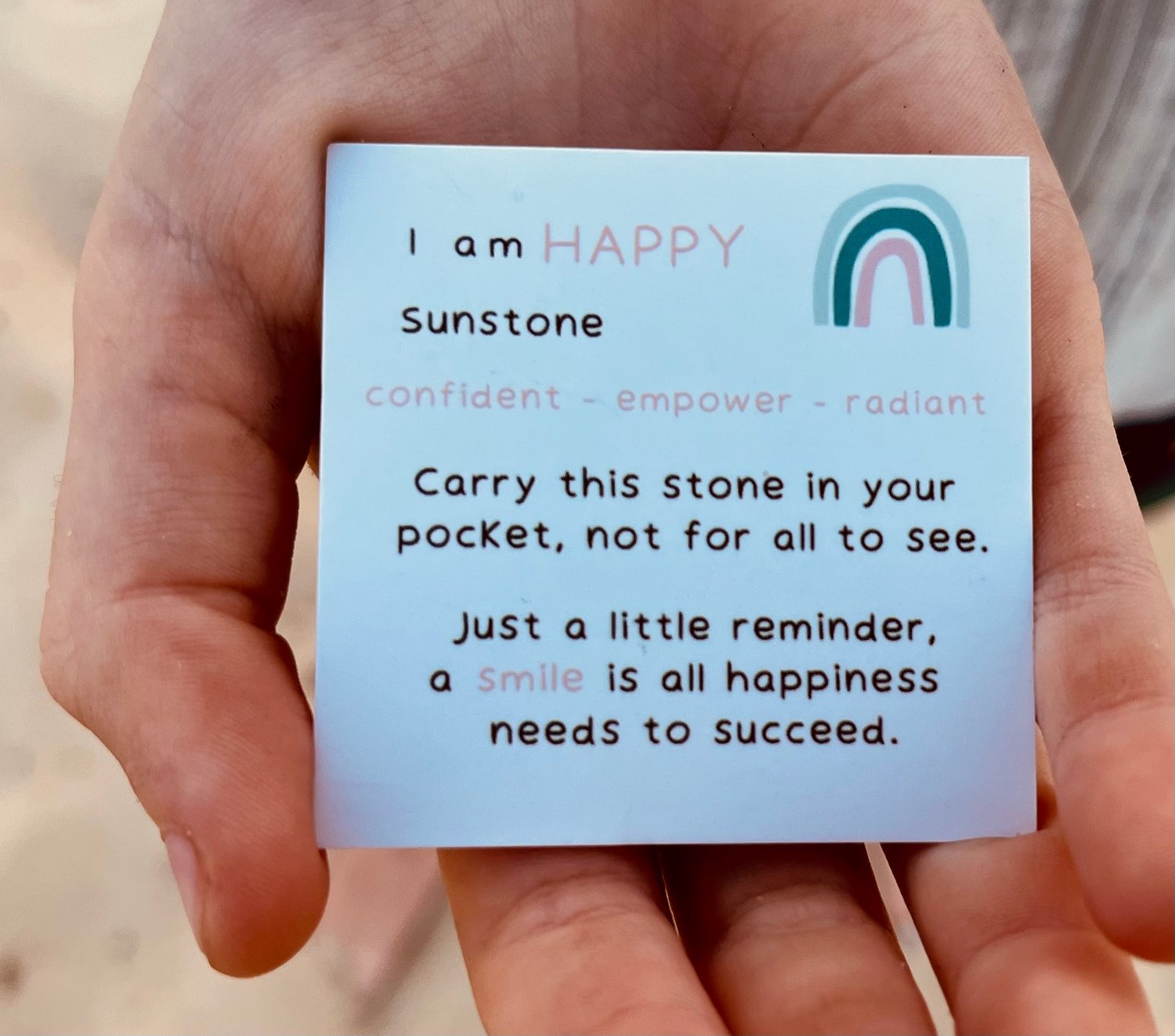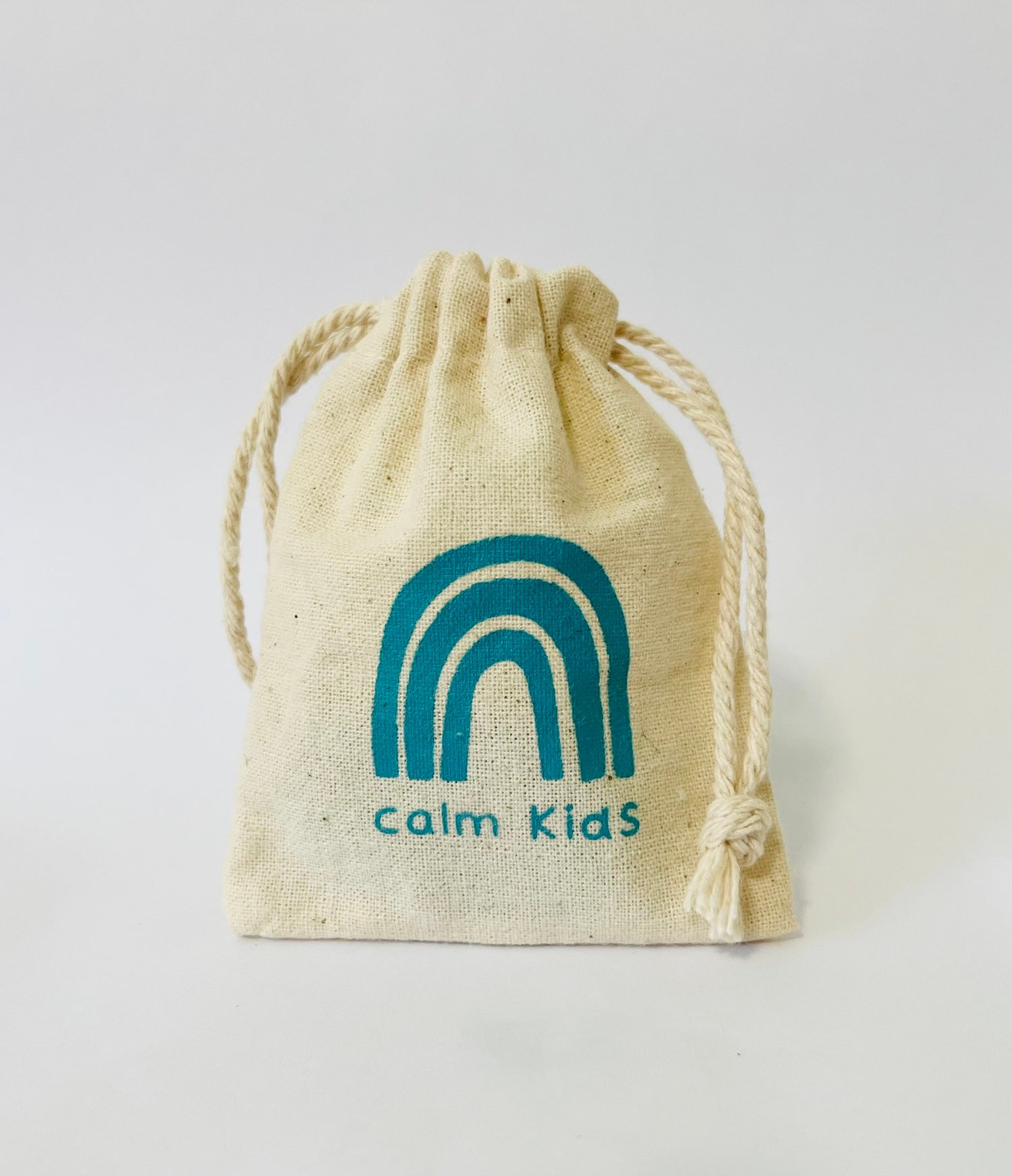 Packaging: The I am Happy Calming stone comes packaged with an I am Happy Card in a small Calm Kids drawstring bag.